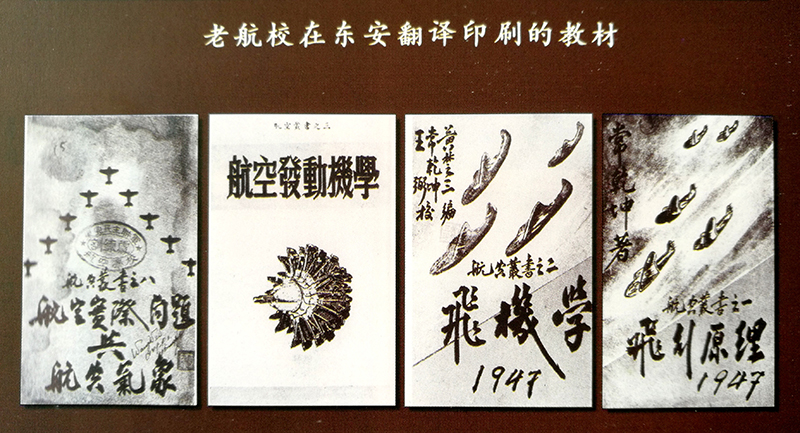 老航校当时上课没有教材、教具,更没有实习器材。教员大都是日本的留用技术人员。在教材没有外部来源的情况下,老航校领导同志亲自动手,教员和专业技术人员能者为师,自编教材。先后编印各种教材和参考资料30多种,并创办了3 种期刊,有《航空学教程》、《轰炸学》、《飞机学》、《飞行原理》及学习月刊等。