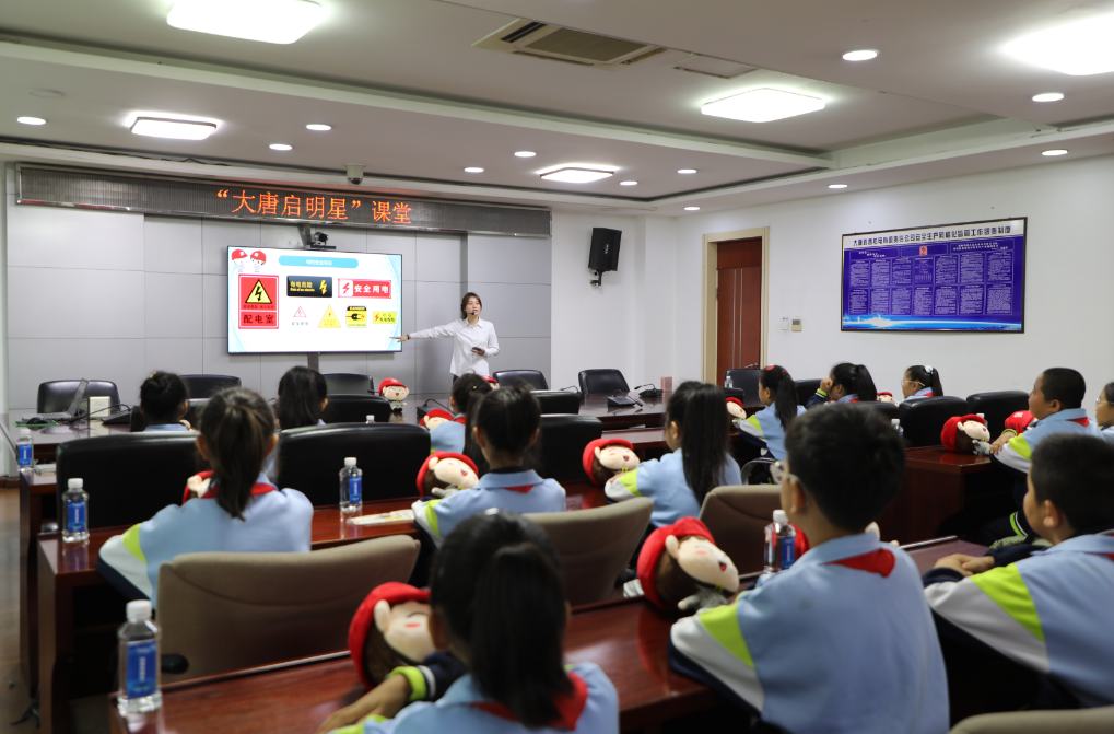 在企业解说员引导下,师生们走进企业文化展厅,感受到企业背后的责任与担当。“大唐启明星”课堂上,解说员用通俗有趣的语言,为同学们普及“电”的生成原理、安全标记等知识,趣味知识点吸引着同学们专注倾听,不时举手分享自己的疑问与发现。尤其是戴上安全帽走进中控室的环节,让同学们兴奋不已。看着屏幕上跳动的数据、闪烁的指示灯,大家直观了解到发电厂的运行状态,连连惊叹科技的神奇力量。