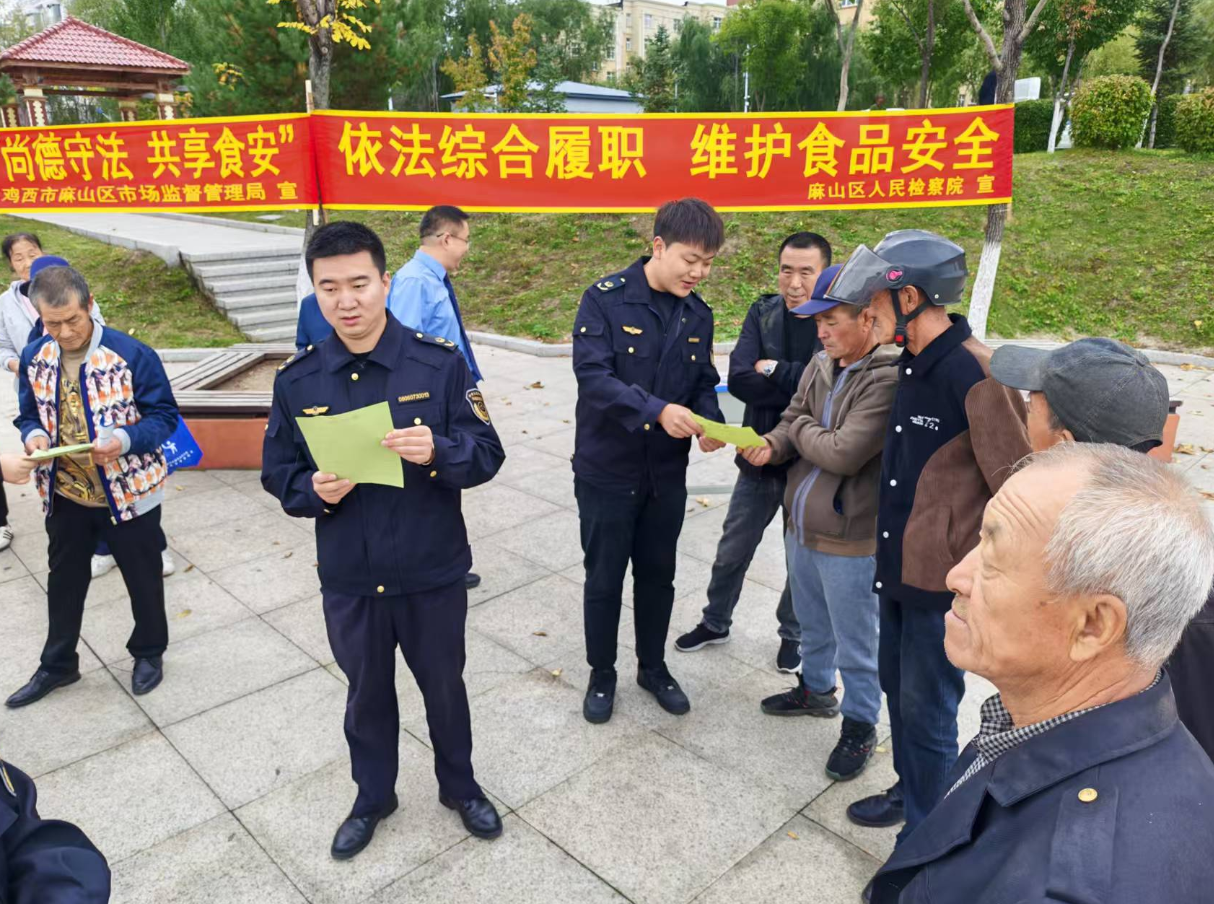 活动现场,“麻山区守护舌尖安全,共筑健康家园”“食品安全无小事,民生保障大于天”等宣传条幅迎风招展,醒目的红色标语瞬间吸引过往市民驻足。在宣传咨询区,工作人员一边发放图文并茂的宣传单页,一边结合日常案例讲解:“选包装食品先看‘SC’标识和保质期,买散装熟食要选有资质的摊位,遇到问题直接打12315……”不少市民拿着宣传单追问细节,还有家长带着孩子逐字阅读,把科普变成了生动的“亲子安全课”。