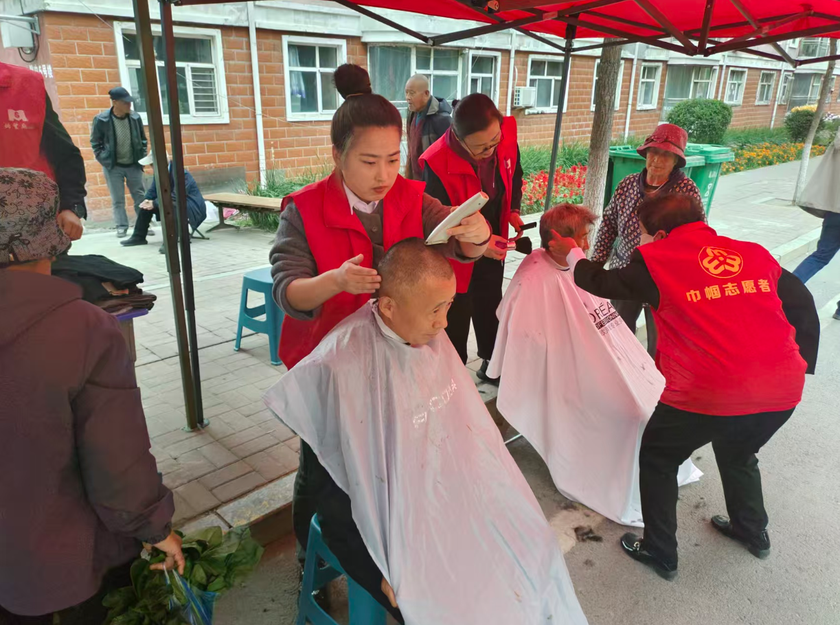 在义诊摊位前,社区卫生服务中心的医护人员正俯身给老人测量血压,针对每位居民的健康状况量身定制养护方案,短短一上午就为40多位居民送上专业建议。隔壁义剪区里,志愿者手法娴熟地修剪发丝,刚理完发的王大爷对着镜子反复打量,竖起大拇指称赞:“这手艺比理发店还地道,咱在家门口就享着福啦!”