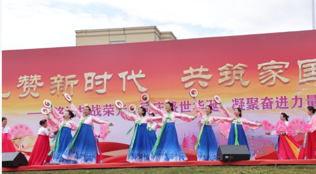 演出中,诗朗诵《山河铭记家国同辉》用铿锵有力的语言回顾峥嵘岁月,舞蹈《中国脊梁》展现中华儿女的担当,朝鲜族舞蹈《见到你很高兴》、蒙古族《筷子舞》则带来浓郁的民族风情,不同节目轮番登场,将现场氛围一次次推向高潮。最后,女声二重唱《我们的中国梦》与舞蹈《幸福的歌》同台呈现,传递出对未来的美好憧憬。