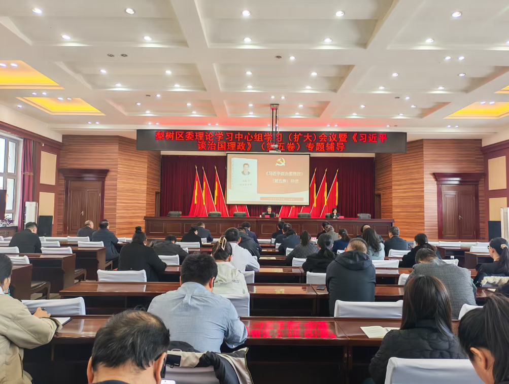 梨树区委对全体干部提出明确要求,要深学细悟、凝心聚力。切实提高政治站位,把学习贯彻《习近平谈治国理政》第五卷与学习贯彻党的二十届四中全会精神紧密结合,作为当前及今后一段时期的重要政治任务,深刻领会其精神实质;要学用贯通、知行合一落实实践要求。牢牢把握高质量发展这个首要任务,深入贯彻新发展理念,培育发展新质生产力,以科技创新引领产业创新,将理论学习成果切实转化为推动工作的强大动力;要精心组织,推动第五卷学习走深走实。充分依托各类载体开展系统、深入的学习,坚持读原著、学原文、悟原理,在全面学习过程中找准结合点、切入点和发力点。同时,结合不同受众特点,组织基层理论宣讲团和宣讲小分队,开展形式多样、富有吸引力和感染力的宣讲活动,在全区迅速掀起学习热潮,让党的创新理论深入人心。