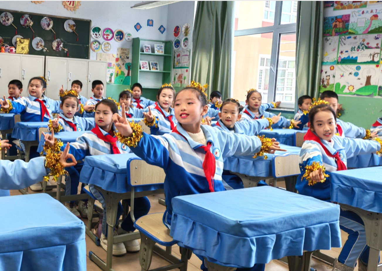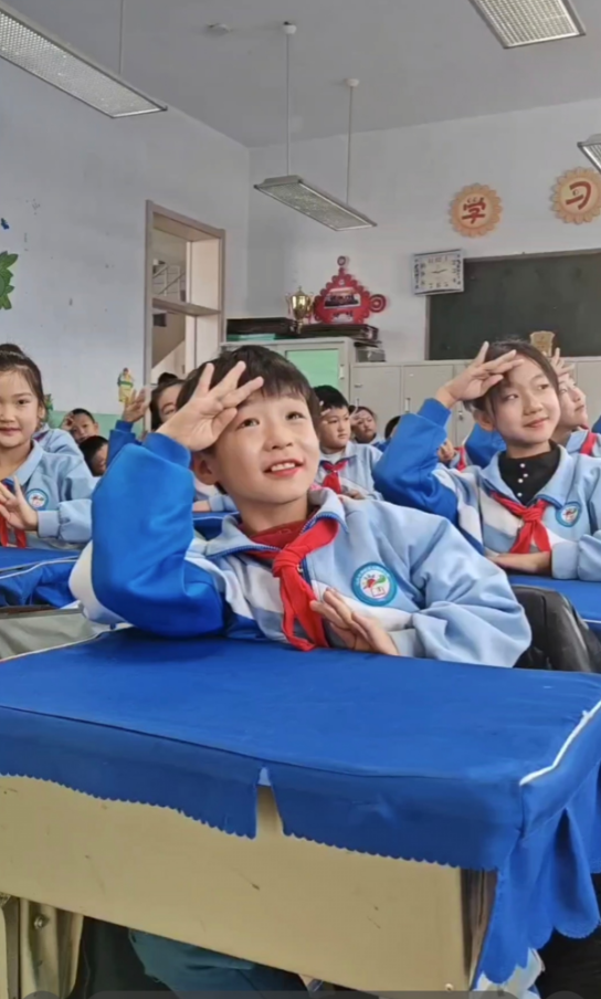 当天,全校学生以班级为单位竞技,将护眼动作与创意、文化深度融合。其中,三、四年级的展示堪称“文化与健康”结合的典范。