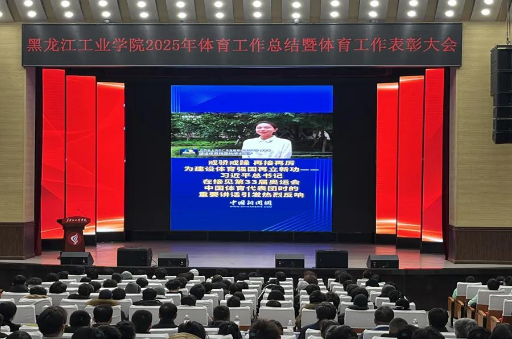 12月17日,黑龙江工业学院2025年体育工作总结暨表彰大会在东校区俱乐部举行,全校500余名师生代表齐聚一堂,共同回顾年度体育事业发展成果,见证优秀典型受表彰的荣耀时刻。