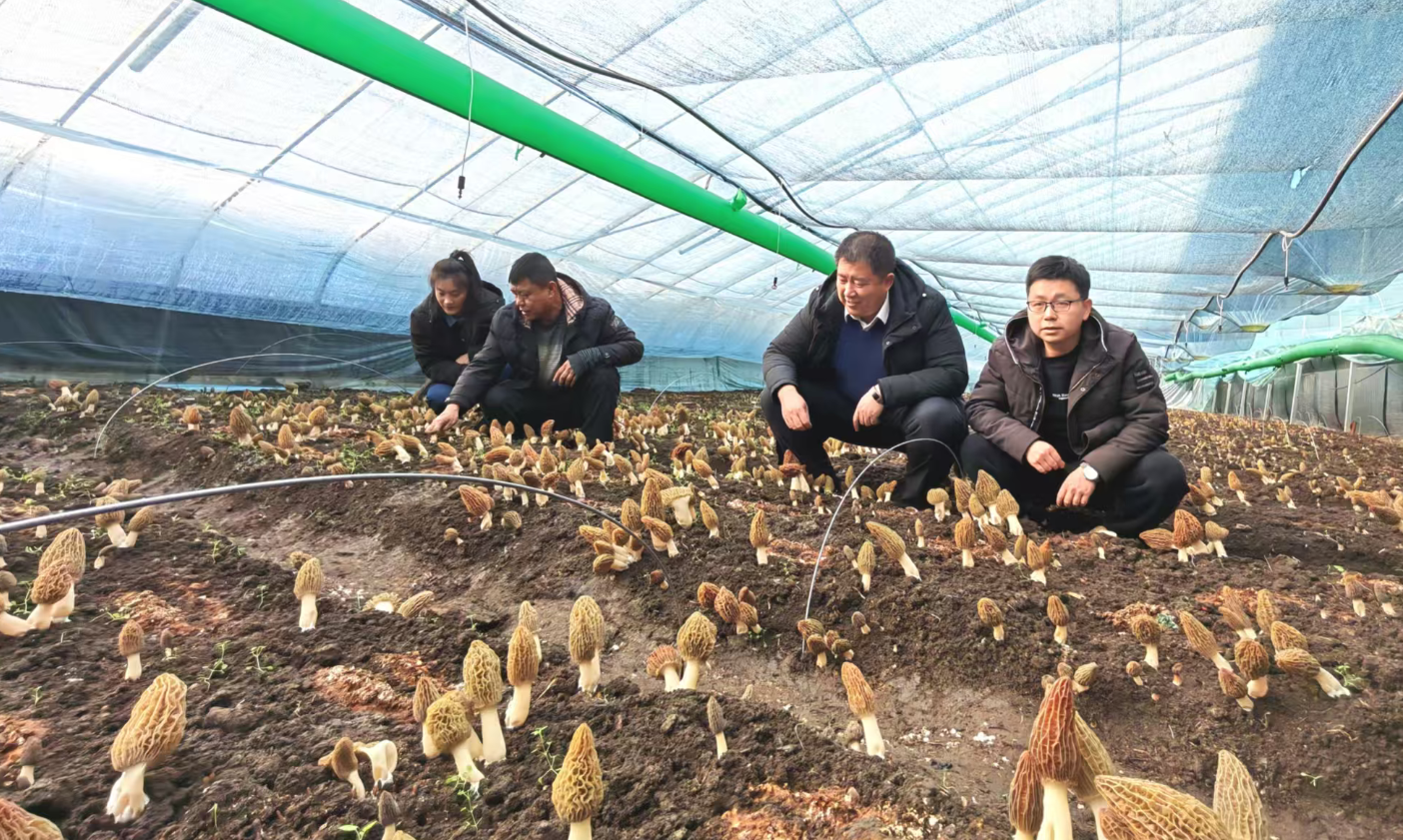 “羊肚菌对温湿度和土壤菌群的要求很高,这段时间温度变化大,要注意大棚的通风换气,控制好温湿度,避免出现病害。”大棚里,专家俯身察看羊肚菌的生长态势,用手拨开土壤查看菌丝发育情况,一边仔细讲解,一边耐心解答农户们提出的问题。从菌种选育、培养基配置,到田间管理、病虫害绿色防控,专家的指导细致入微,让在场的种植户们受益匪浅。