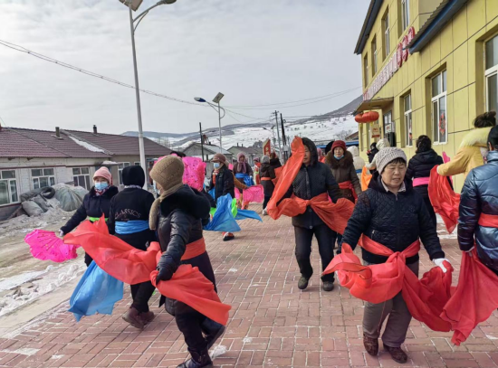 秧歌表演点燃节日热情。在龙山村文化广场,村民腰系彩绸,手持彩扇、手绢,踩着欢快鼓点扭起来,队形变换有序,舞姿灵动喜庆,锣鼓声、欢笑声此起彼伏;新光村表演者身着喜庆朝鲜族服饰,用饱满的热情演绎着乡村的幸福生活与对新年的美好期盼。