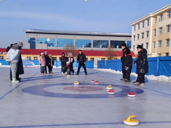 冰雪场上,活力飞扬。随后,六中操场、二十五中操场、太阳升操场变身欢乐的冰雪乐园,简易冰壶、拉雪圈、冰球体验等趣味项目依次开展。专业冰雪教练耐心指导动作要领,营员们身着保暖装备,在雪地里奔跑、协作、拼搏,欢呼声与笑声驱散了冬日寒意。“冰壶看起来简单,实际操作起来特别考验配合,我们小组练了好几次才成功,这种一起努力的感觉太酷了!”太阳升小学的尚福崇脸上带着笑意,语气里满是成就感。