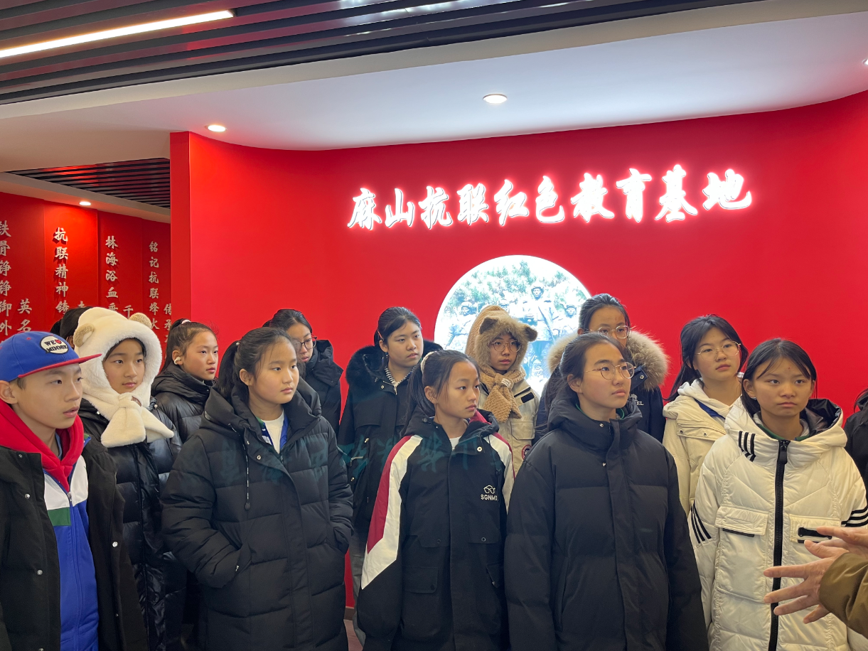 第四站,大家走进麻山抗联红色教育基地,在珍贵的史料文物、生动的场景还原中,重温抗联英雄们在艰苦环境中坚守信念、奋勇抗争的峥嵘岁月。讲解员的深情讲述让红色故事跨越时空,抗联精神的内核——坚韧、无畏、爱国,深深烙印在每一位学子心中,让红色基因在青春岁月中生根发芽。