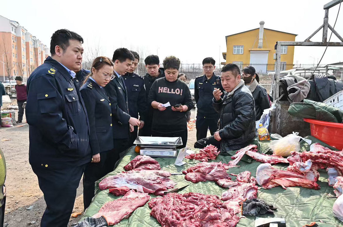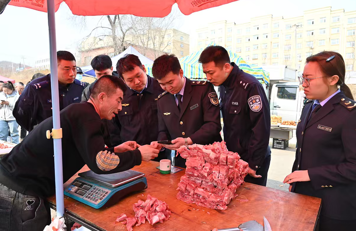为凝聚监管合力、强化执法震慑,麻山区市场监管局牵头联合公安、农业农村等多部门,组建联合执法专班,对辖区大集、超市、鲜肉店等鲜肉销售点位,开展拉网式全面检查。执法人员逐户核查检疫证明、进货票据,仔细检查鲜肉储存条件、来源追溯情况,对发现的票据不全、储存不规范等问题,现场指导、限期整改,依法严厉打击违法经营行为,彻底净化辖区鲜肉销售市场。